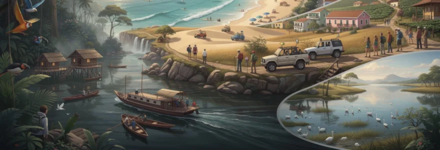 Le Pantanal, plus grande zone humide tropicale du monde, est un laboratoire grandeur nature de tourisme fluvial et lacustre. Ici, la diversité des paysages ne tient pas seulement à la faune exceptionnelle (jaguars, caïmans, capybaras, oiseaux par milliers), mais à la transformation radicale du territoire entre saison des pluies et saison sèche. Une piste en terre peut devenir un canal navigable, un champ sec une lagune temporaire.
